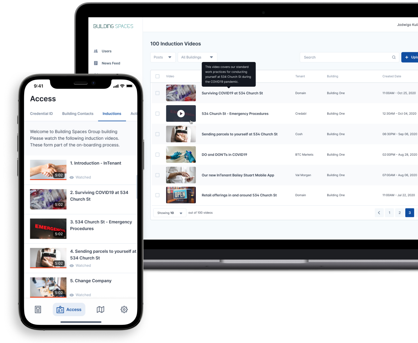 There is always a need for all staff, tenants and contractors to be aware of specific requirements associated with residing in a building. It could be things like fire evacuation procedures, trades and service people inductions, or even COVID compliance requirements. In this section of the application, induction videos can be published to everyone in a building, or to specific tenants.